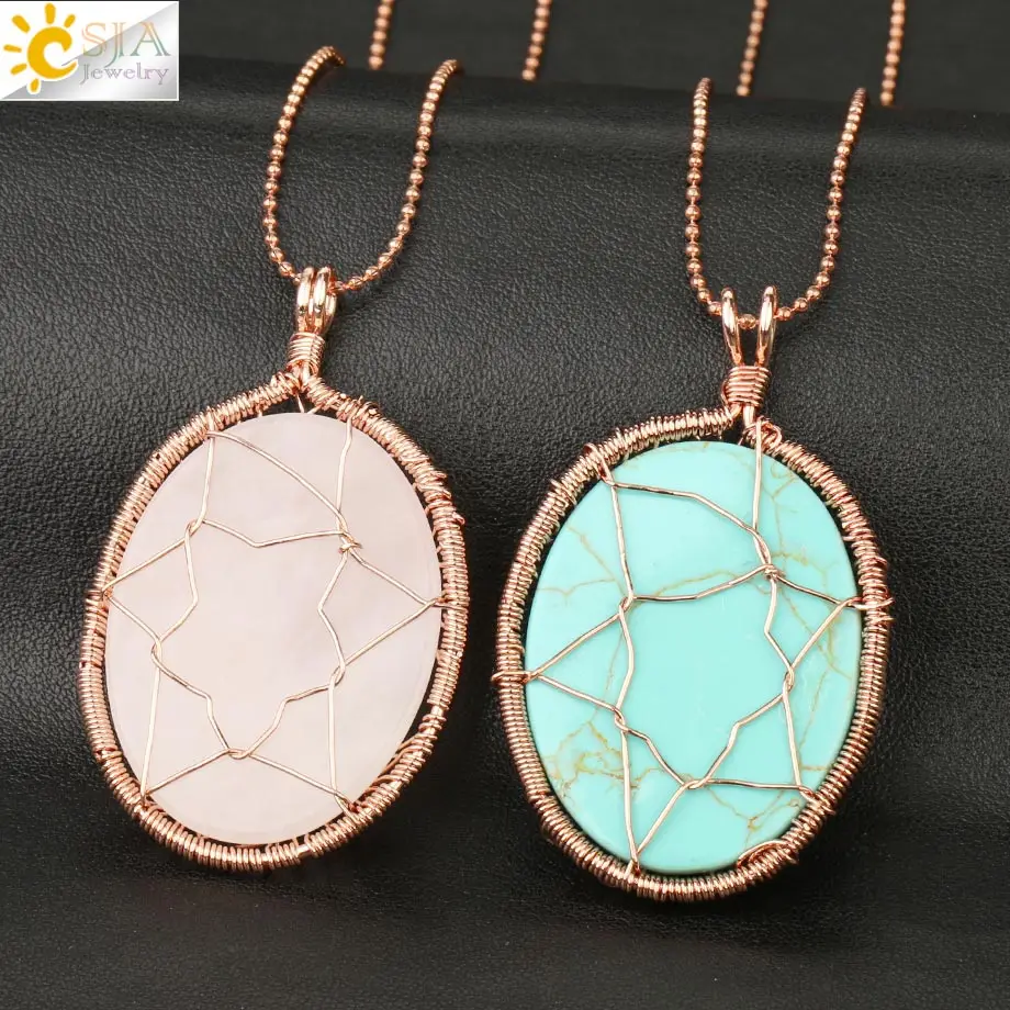 CSJA Natural Cabochon Stone Tree of Life Pendant Rose Gold Color Wire Wrap Chip Bead Wisdom Tree Healing Women Men Necklace G193,CSJA Natural Stone Copper Wire Wrap Pendant Irregular Geometric Bead Rose Gold Color Necklace for Women Men Healing Jewelry G196, CSJA Natural Stone Copper Wire Wrap Pendant Irregular Geometric Bead Rose Gold Color Necklace for Women Men Healing Jewelry G196