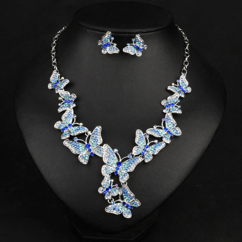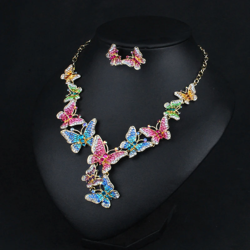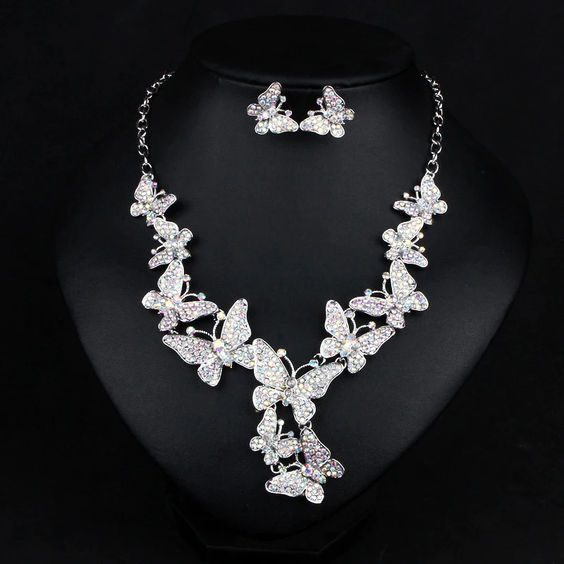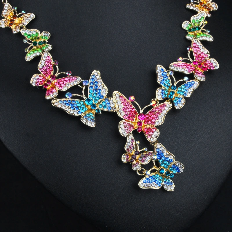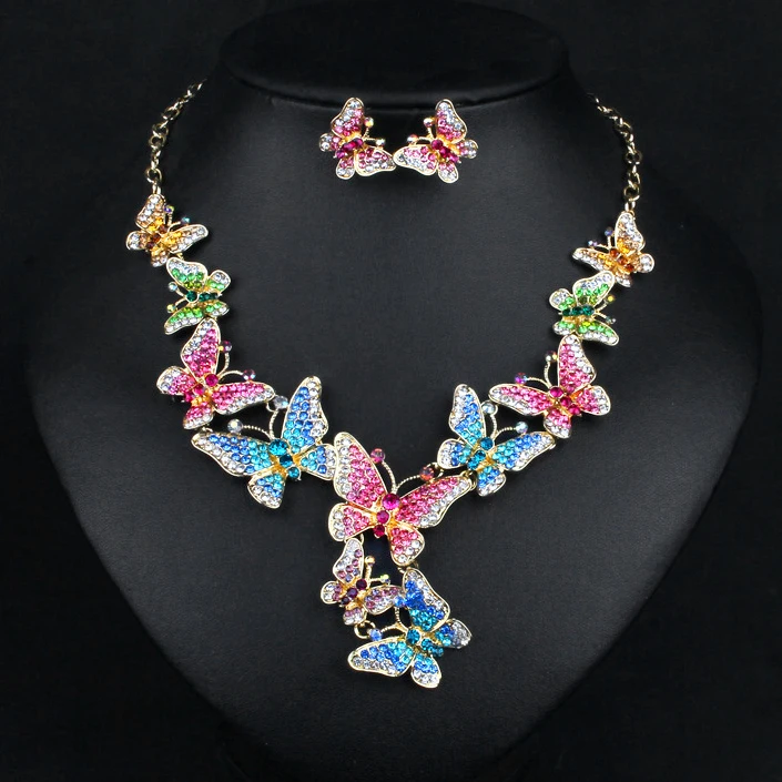 price cut New Elegant Butterfly Bridal Jewerlry Sets Drop Earrings Indian Statement Necklace Set Wedding Part