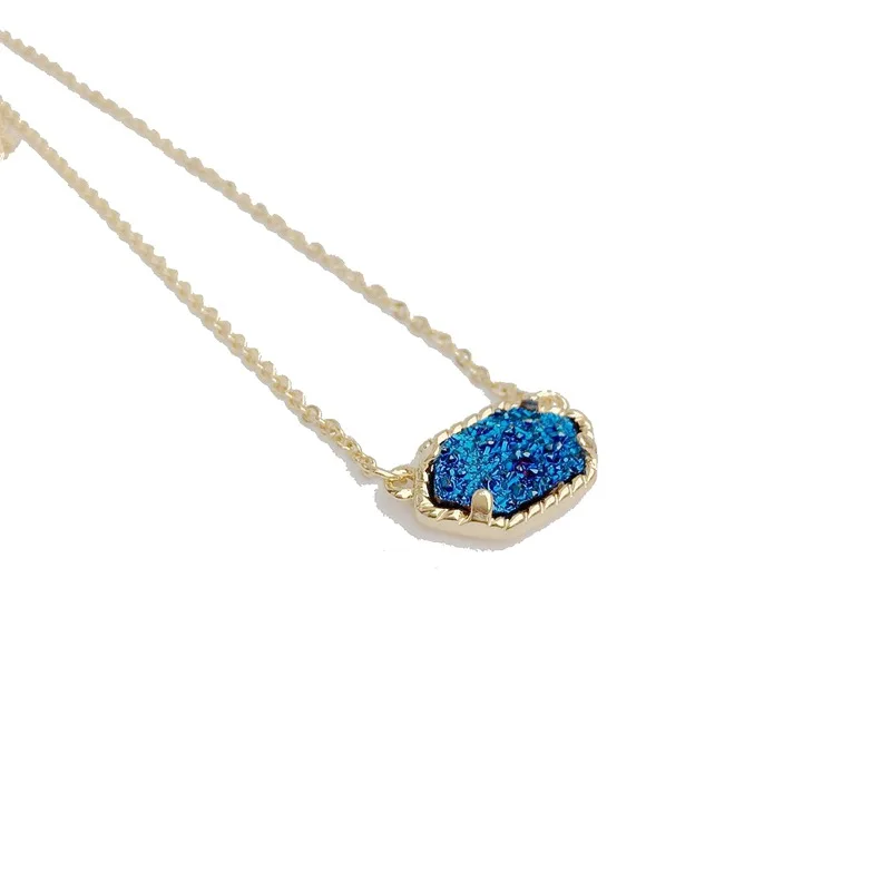 Promo 20 Option Druzy Drusy Pendant Necklace Hexagon Resin Druse Silver Gold Colour Chain Collar Fashion