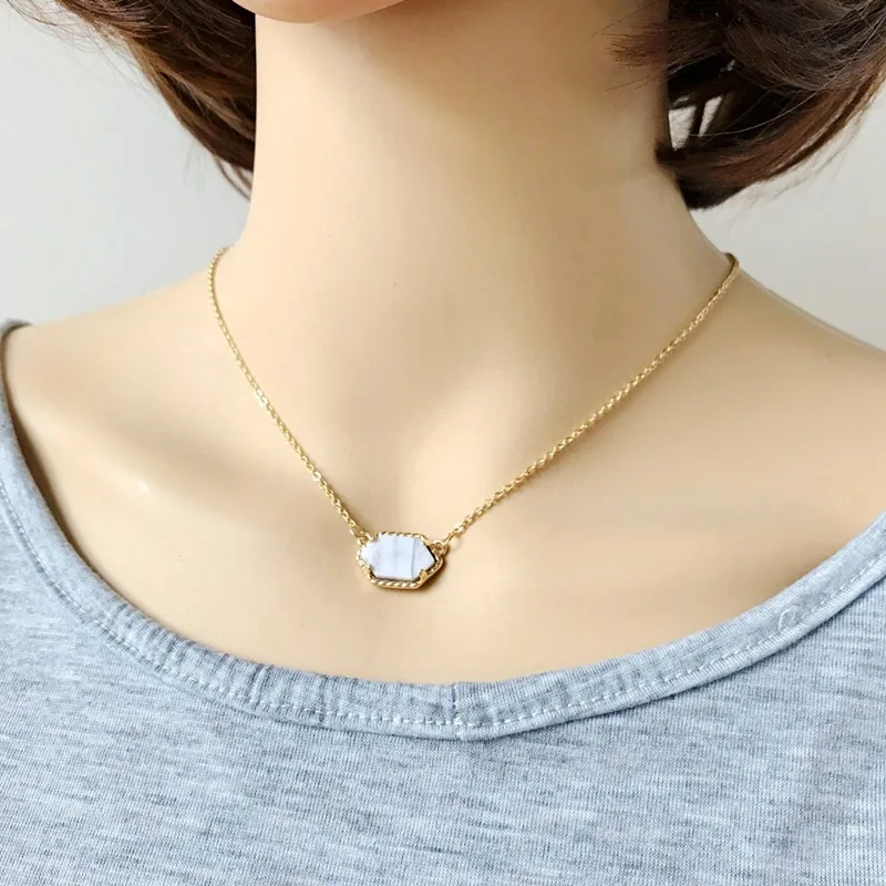 lower price 20 Option Druzy Drusy Pendant Necklace Hexagon Resin Druse Silver Gold Colour Chain Collar Fashion