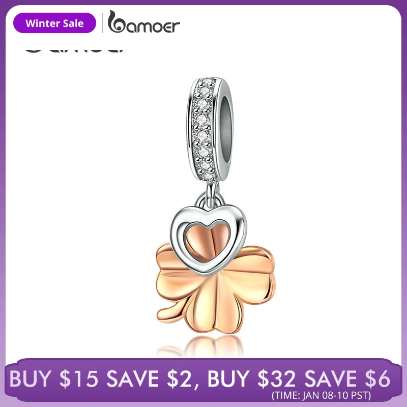 wonderful bamoer Gardon Lucky Clover Charm fit Women Snake Bracelets Medicago Heart Pendant for Necklace Ster