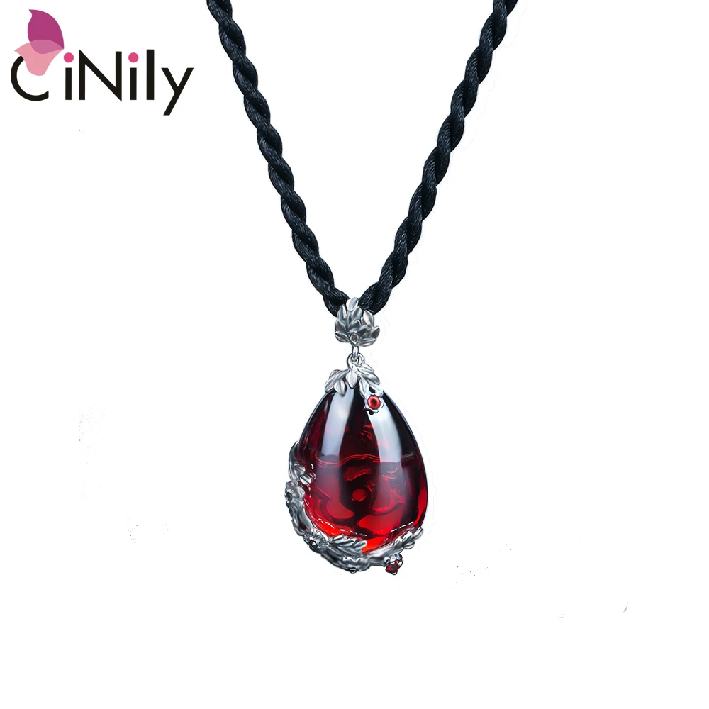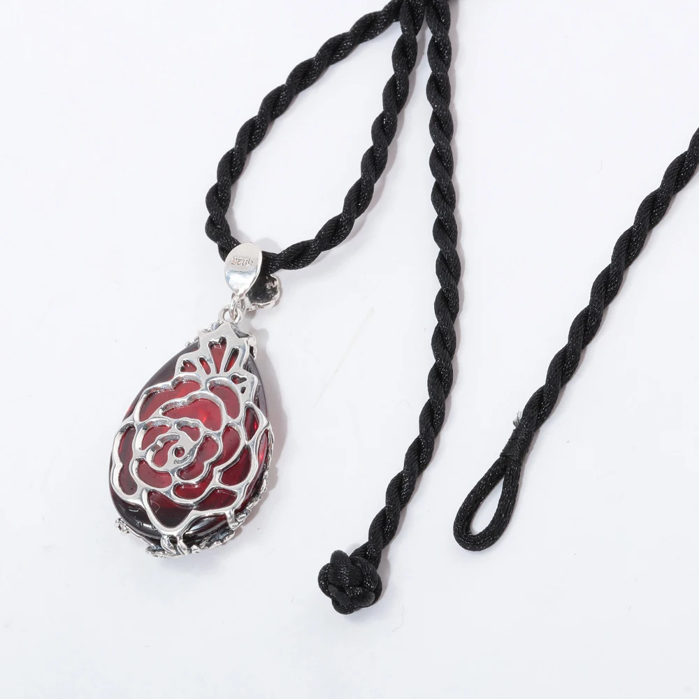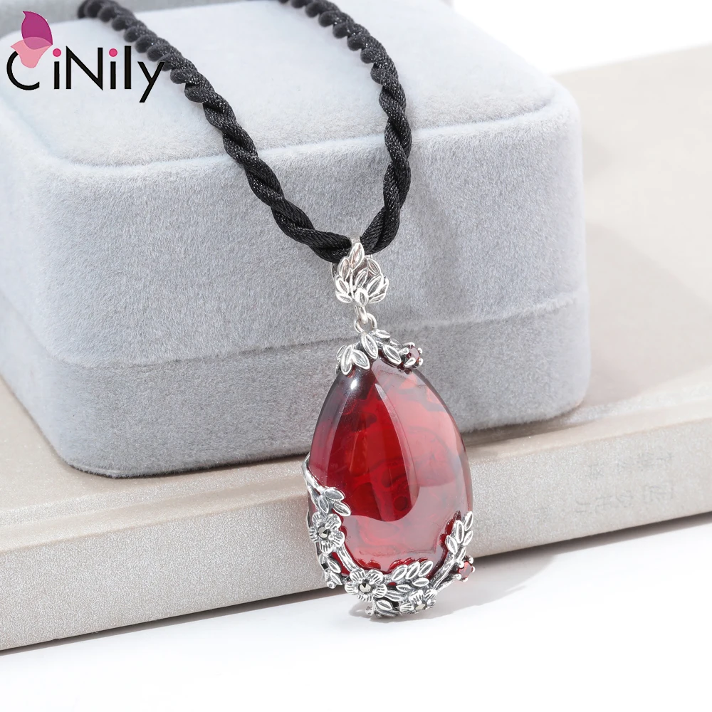 wonderful CiNily Large Natural Stone Necklaces & Pendants Solid 925 Sterling Silver Oval Red Garnet Black Thr