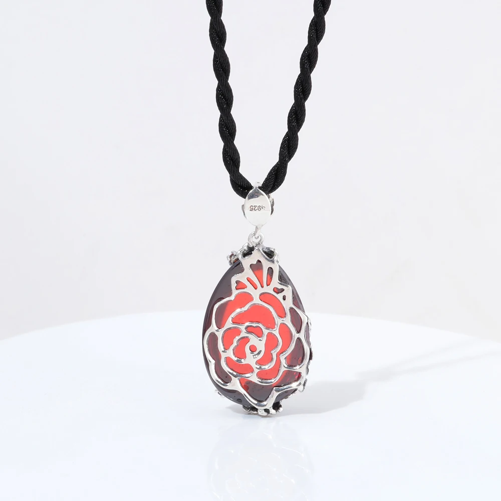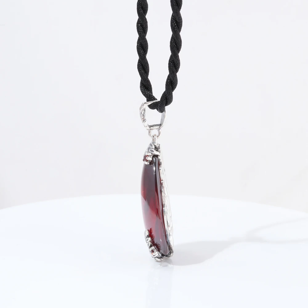 incredible CiNily Large Natural Stone Necklaces & Pendants Solid 925 Sterling Silver Oval Red Garnet Black Thr